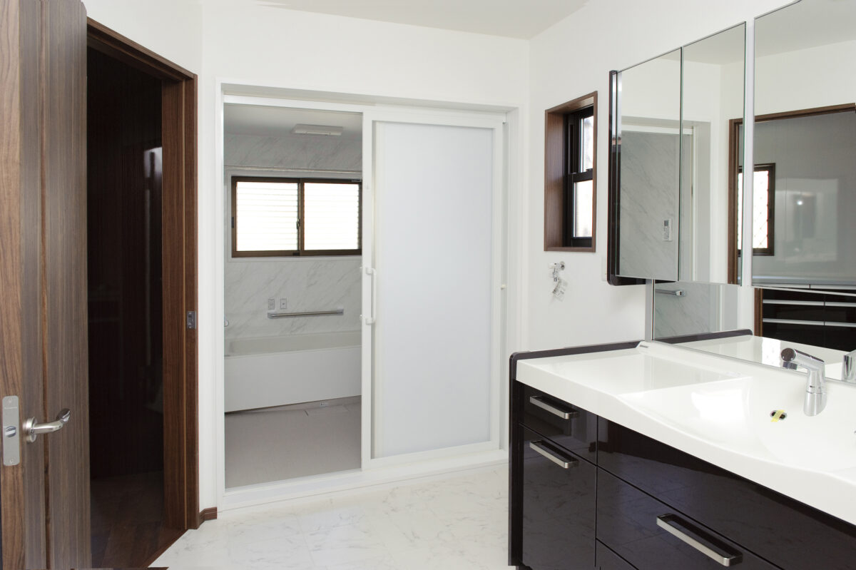 水まわりは白を基調とした大理石と木でまとめられており、高級感のある仕上がりになりました。